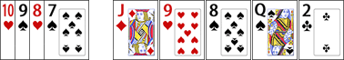 A flush is only possible in Omaha if a player has two of that suit among his four cards. In this particular example the best Omaha hand you can make is; ![]()