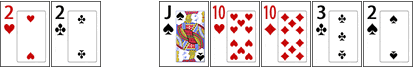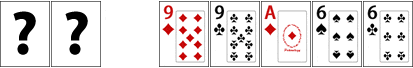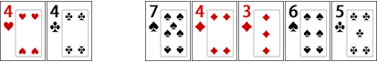 In this example your best hand is for a straight. You could use one of the 4’s in your hand but it doesn’t make any difference because you’re effectively “playing the board”.