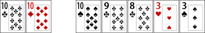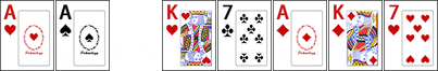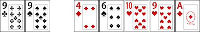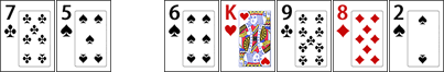 In this example your best hand is for a straight. You could use one of the 4’s in your hand but it doesn’t make any difference because you’re effectively “playing the board”.