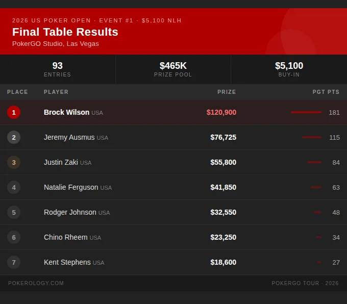 Brock Wilson Wins US Poker Open Event #1 to Extend Remarkable PGT Streak