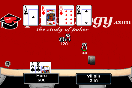 20. You're playing in a no-limit hold'em tournament and it has been folded to you in the small blind where you're holding a pair of deuces. The blinds are 300/600, and after posting the blinds you have 4,000 and the big blind has 20,000, as shown here:
